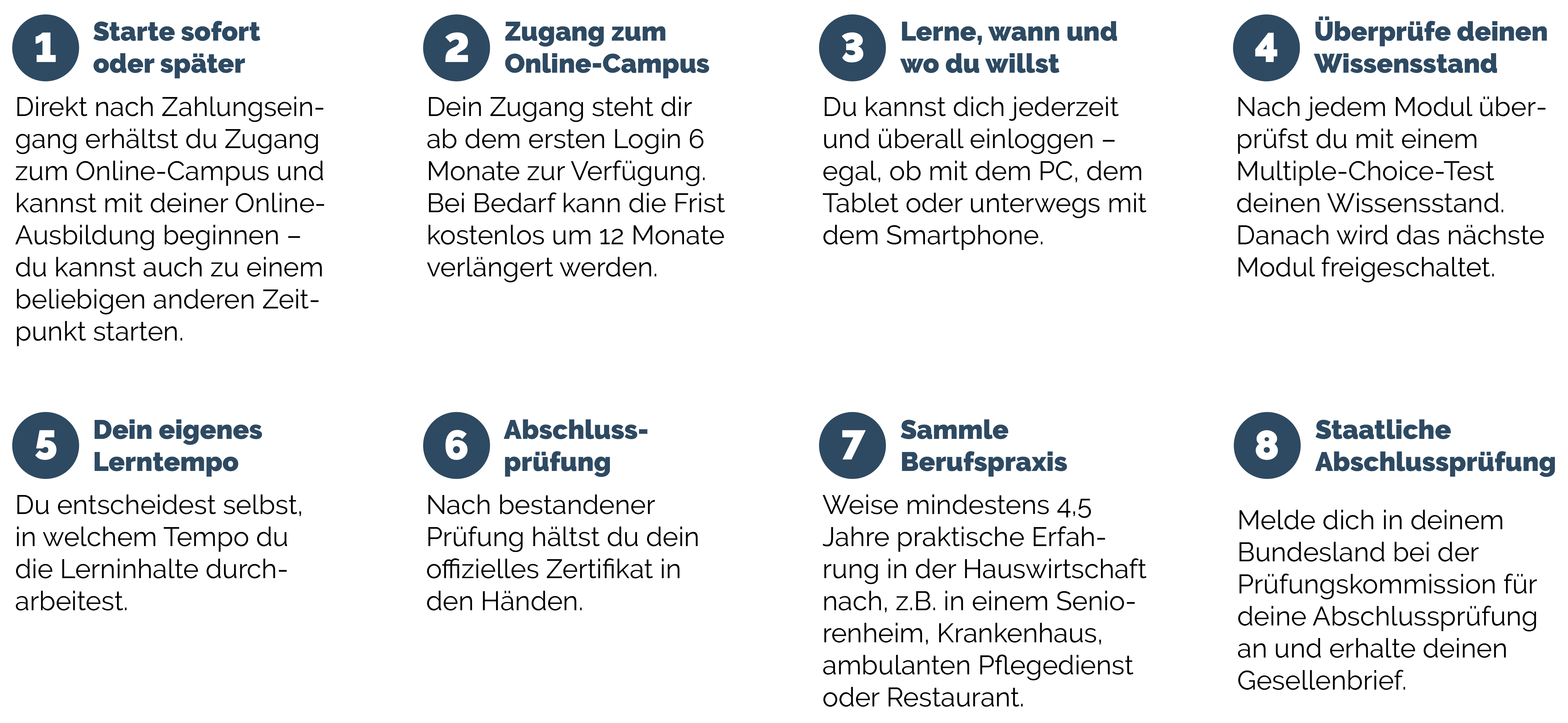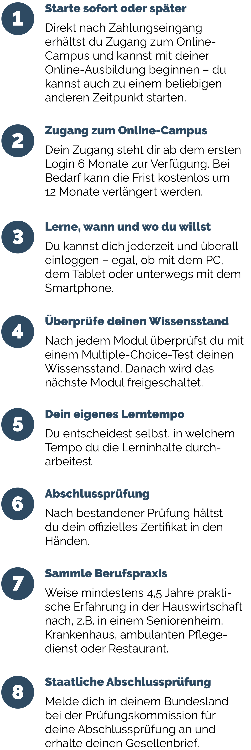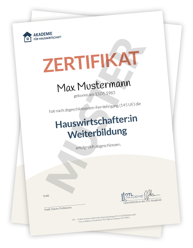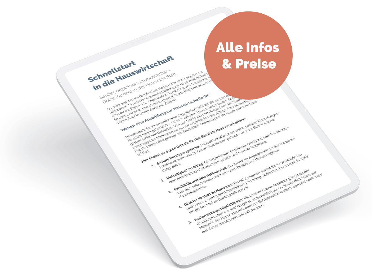 Voraussetzung dafür ist, dass du mindestens 4,5 Jahre Berufspraxis in der Hauswirtschaft nachweist.